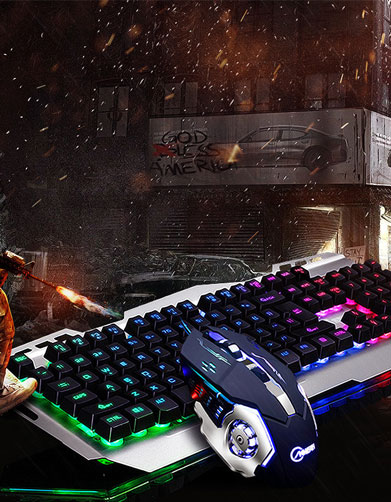 AOC真機械手感鍵盤鼠標(biāo)套裝有線游戲背光發(fā)光臺式電腦外設(shè)筆記本辦公